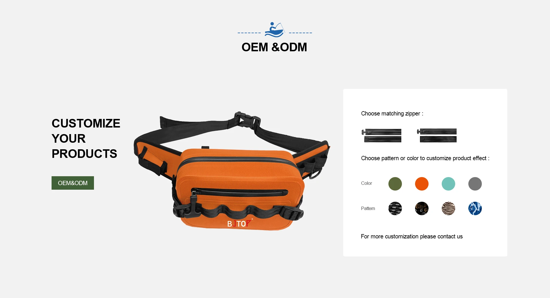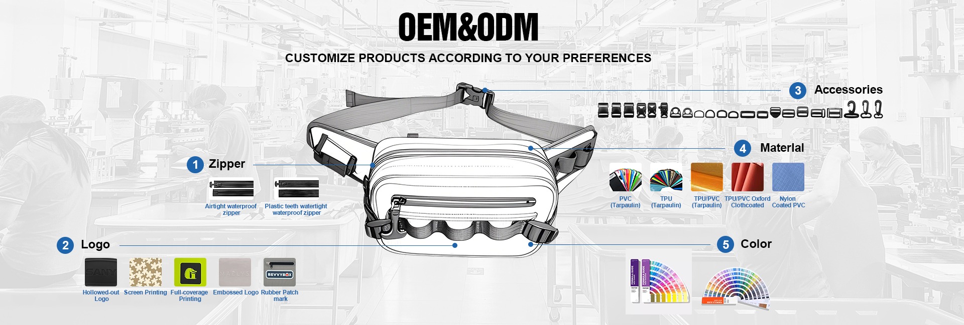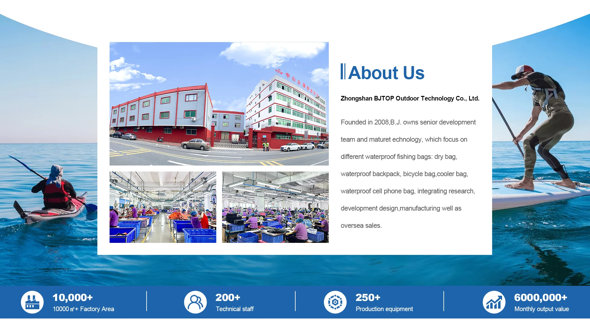 מוצרים עיקרייםתיק גב עמיד למים, תיק המותניים עמיד למים, תיק קריר, תיק יבש, תיק עמיד למים